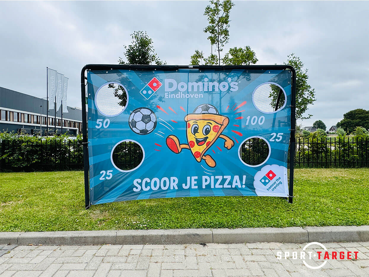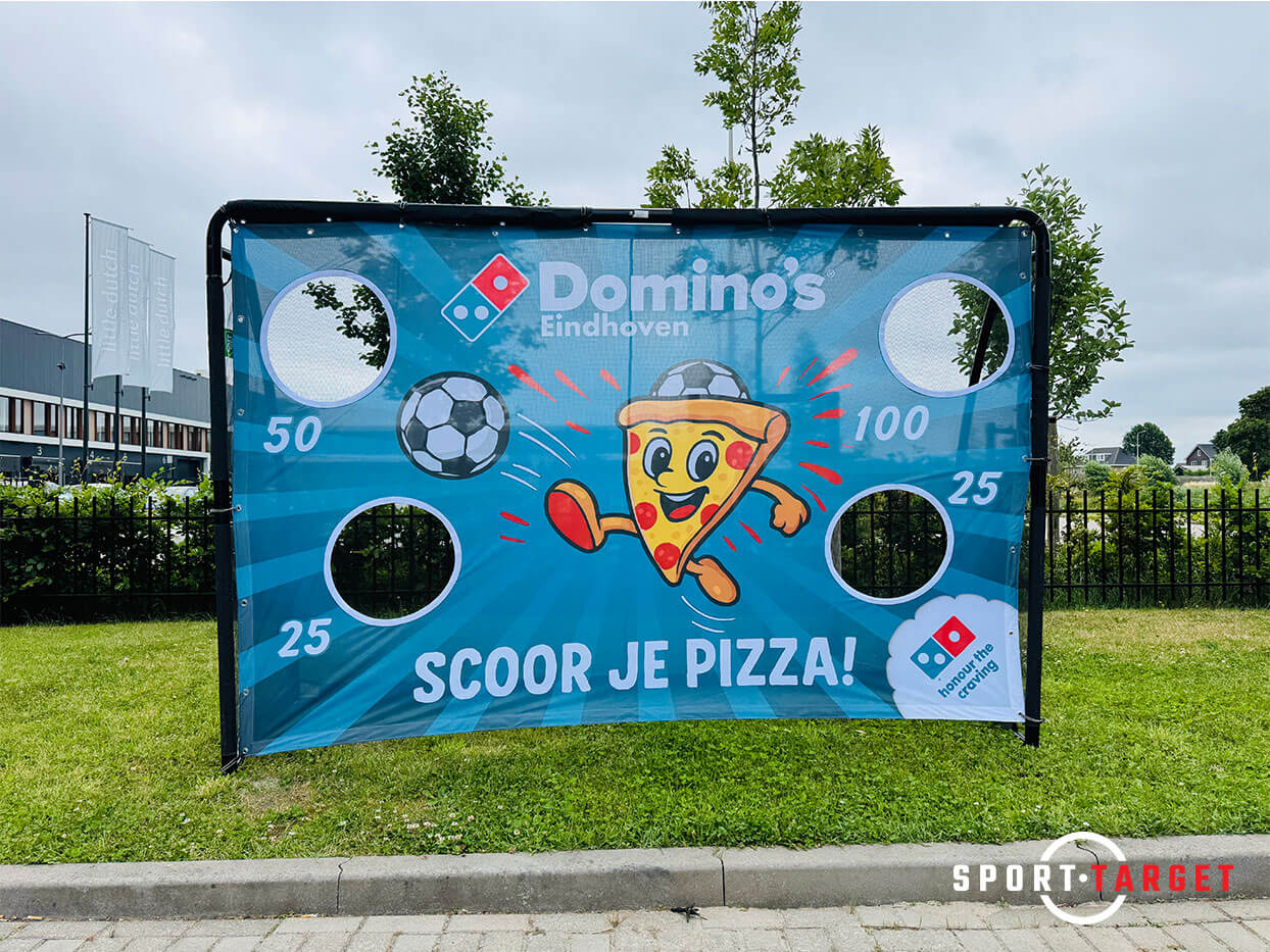Voor de vestiging van Domino’s Pizza in Eindhoven realiseerde Sporttarget een opvallende en effectieve sportieve promotieactivatie. Met behulp van onze Business Target – inclusief een op maat gemaakte custom target – wist Domino’s op een laagdrempelige én speelse manier maximale aandacht te trekken voor hun merk.