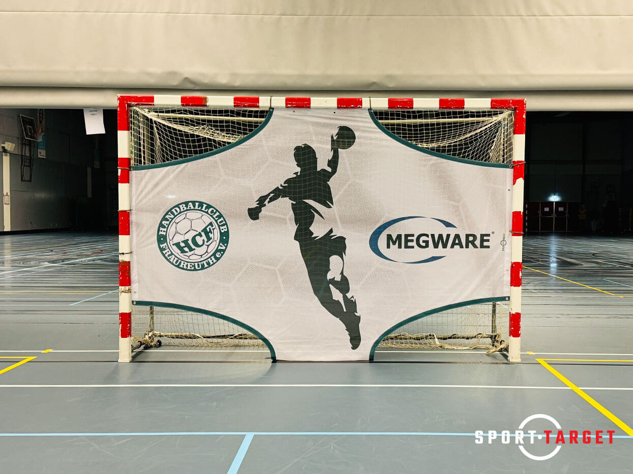 Onze Handbal Traintarget Custom Design wordt standaard geleverd in een formaat van 3m x 2m.